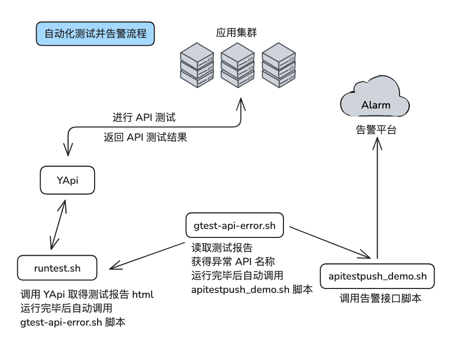使用脚本,在 API 检测完毕后自动调用告警脚本,将异常的 API 接口通过告警平台发出。